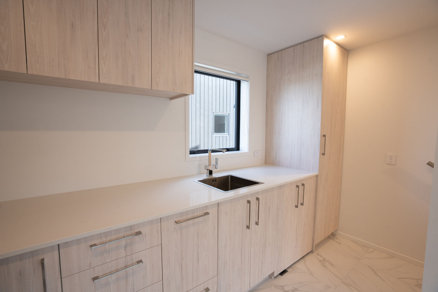 The three storey Townhouses consist of the ground floor being a full-size bedroom which includes a large built-in wardrobe, additional storage space under the stairs and an ensuite; plus separate toilet. Transitioning from the entrance way, the first floor includes the open plan kitchen, dining and living areas, opening on to a balcony.